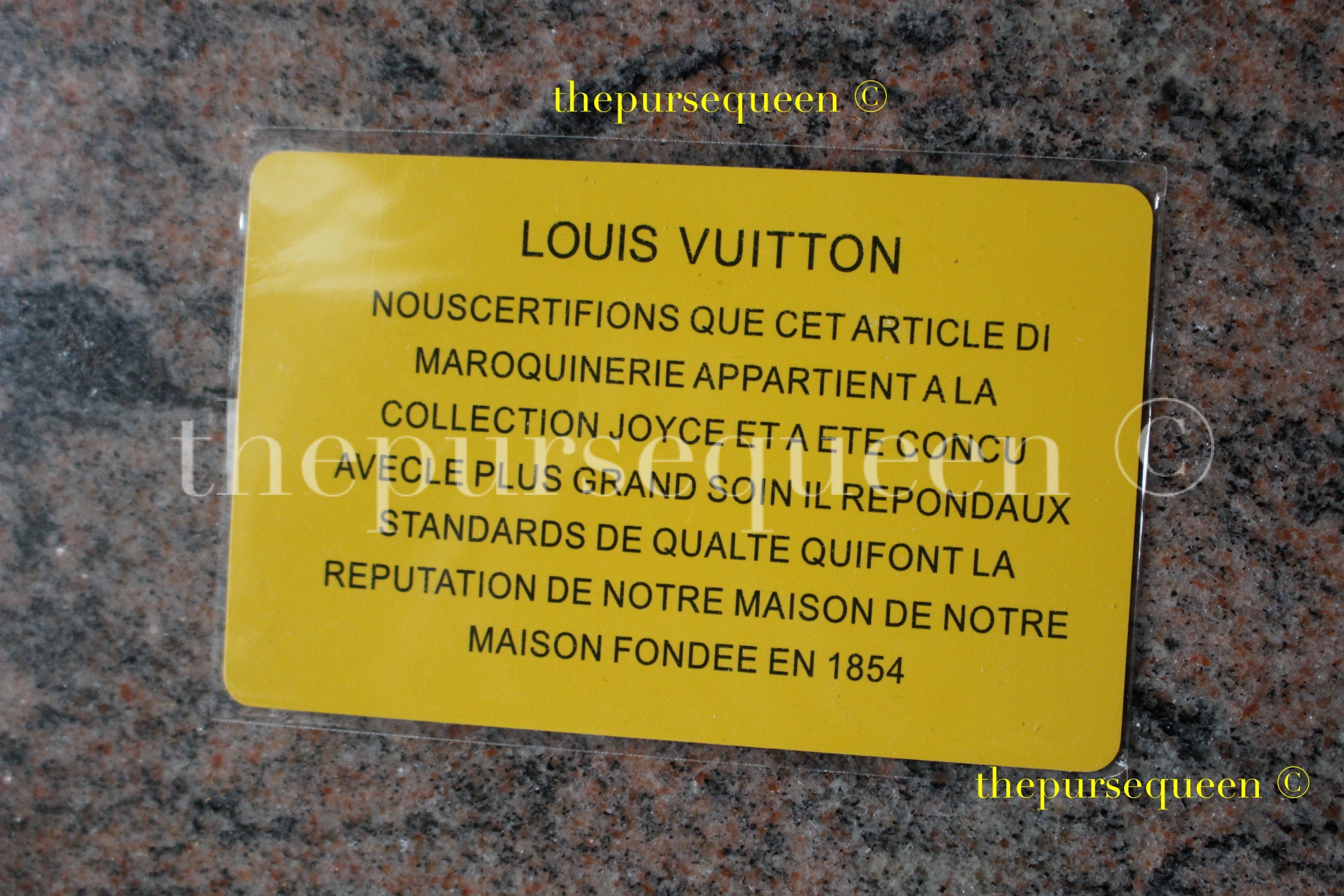 - The back of the Fake card that came with the bag.
