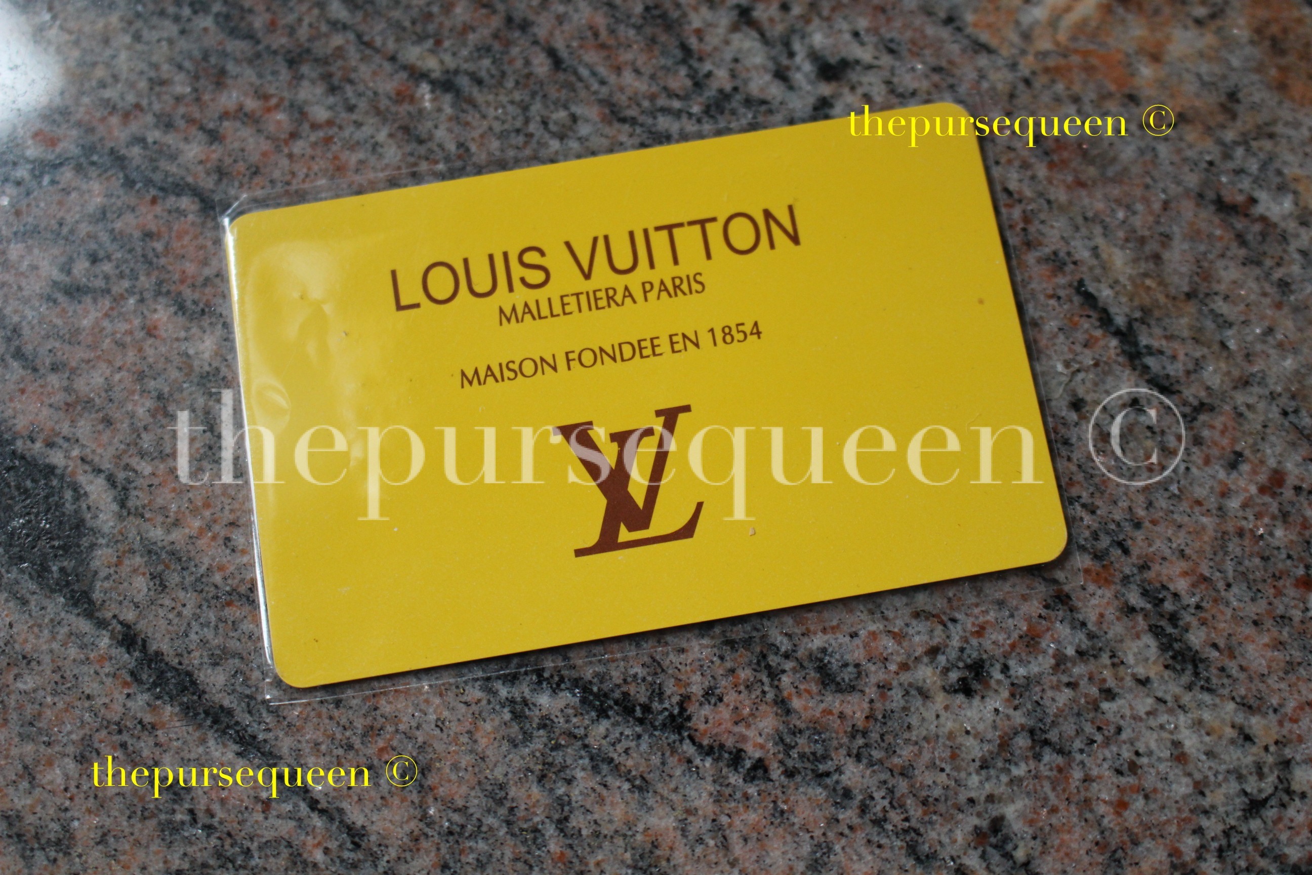 - The front of the Fake card that came with the bag.