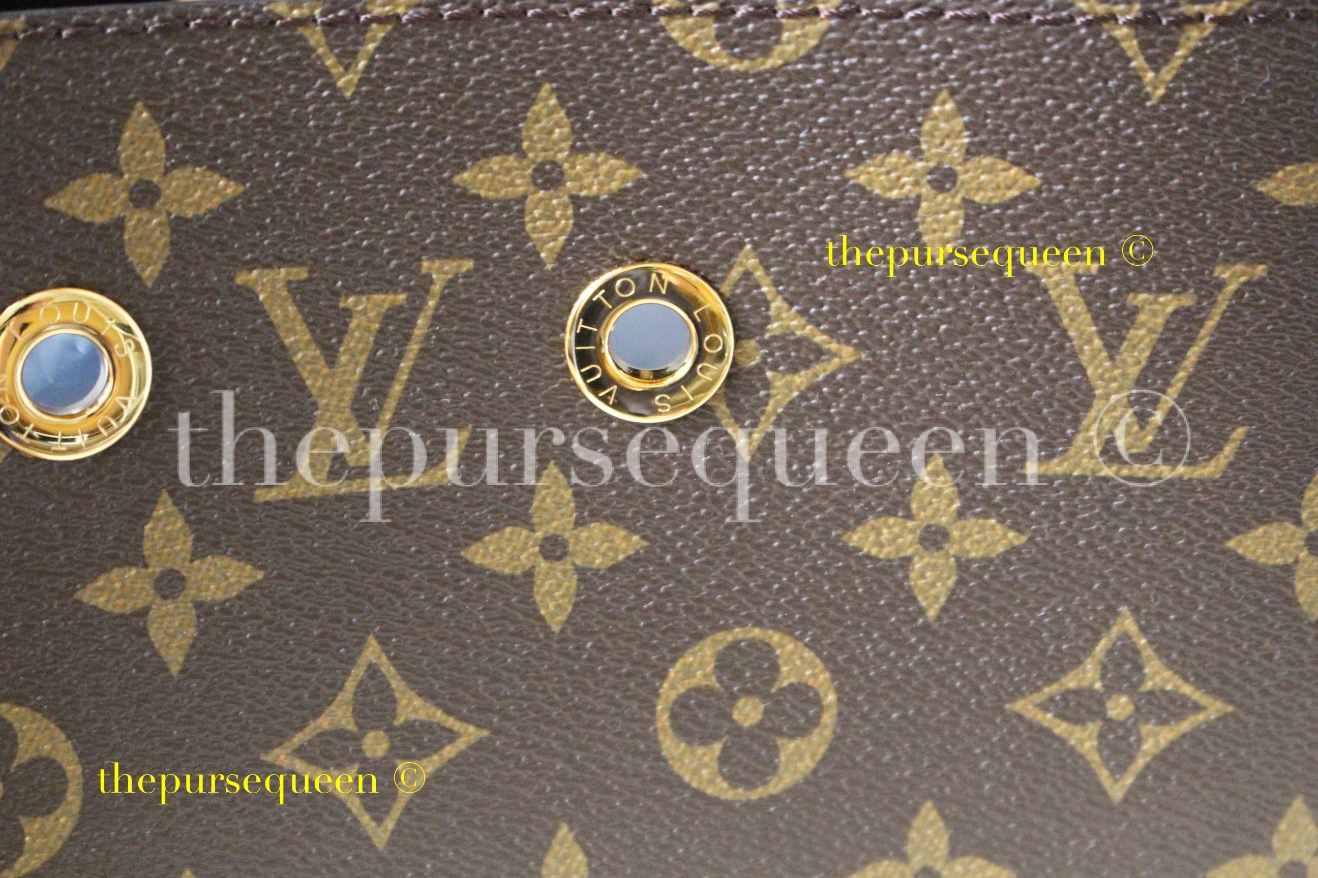- A closeup of the hardware and the monogram canvas.