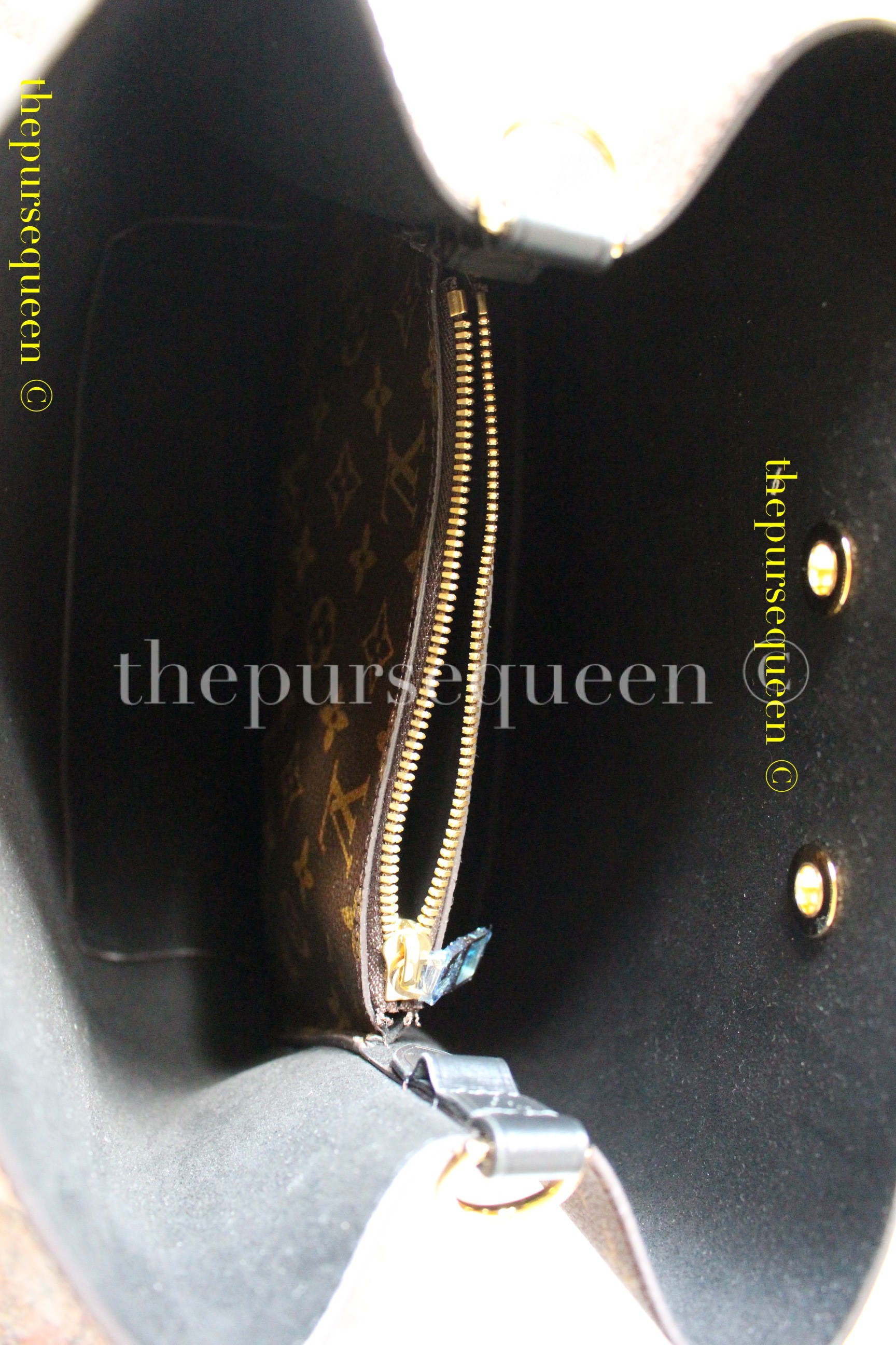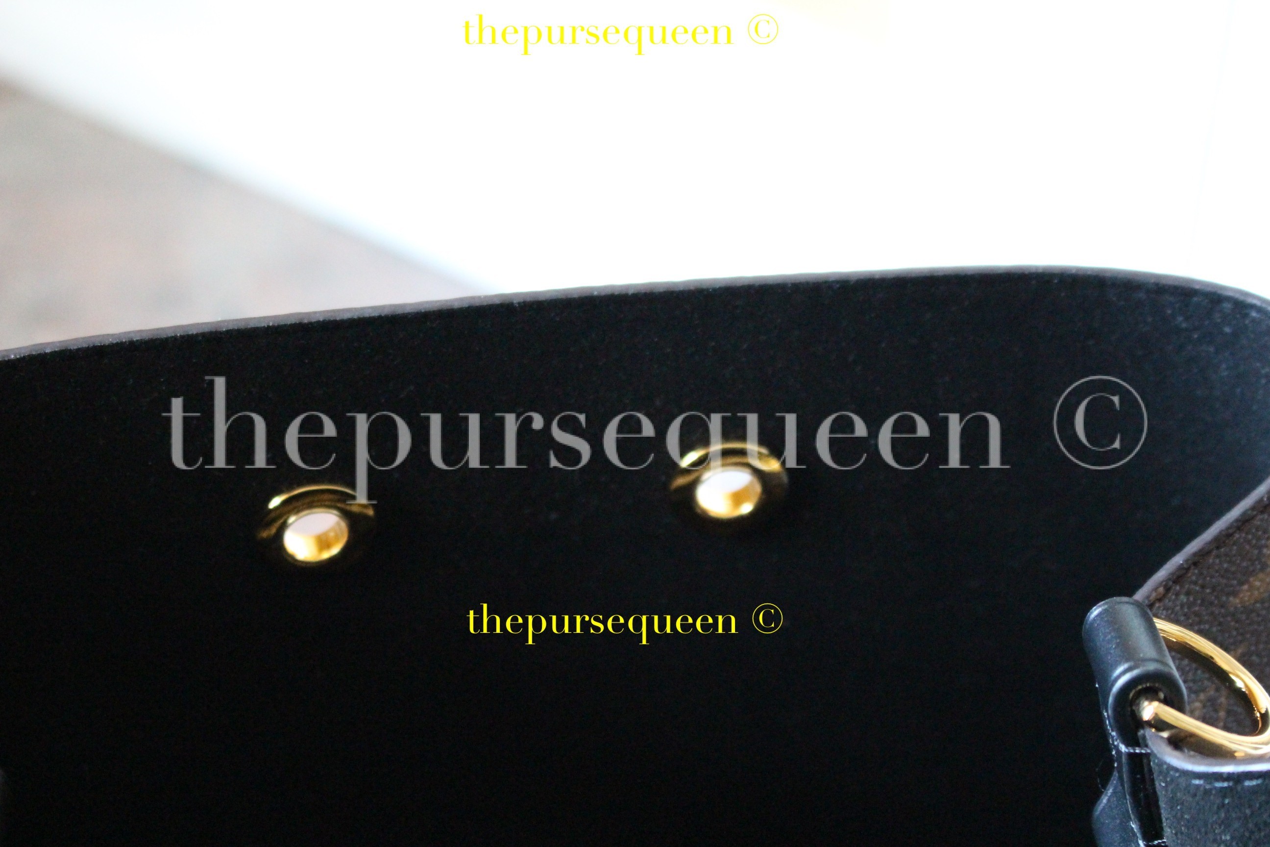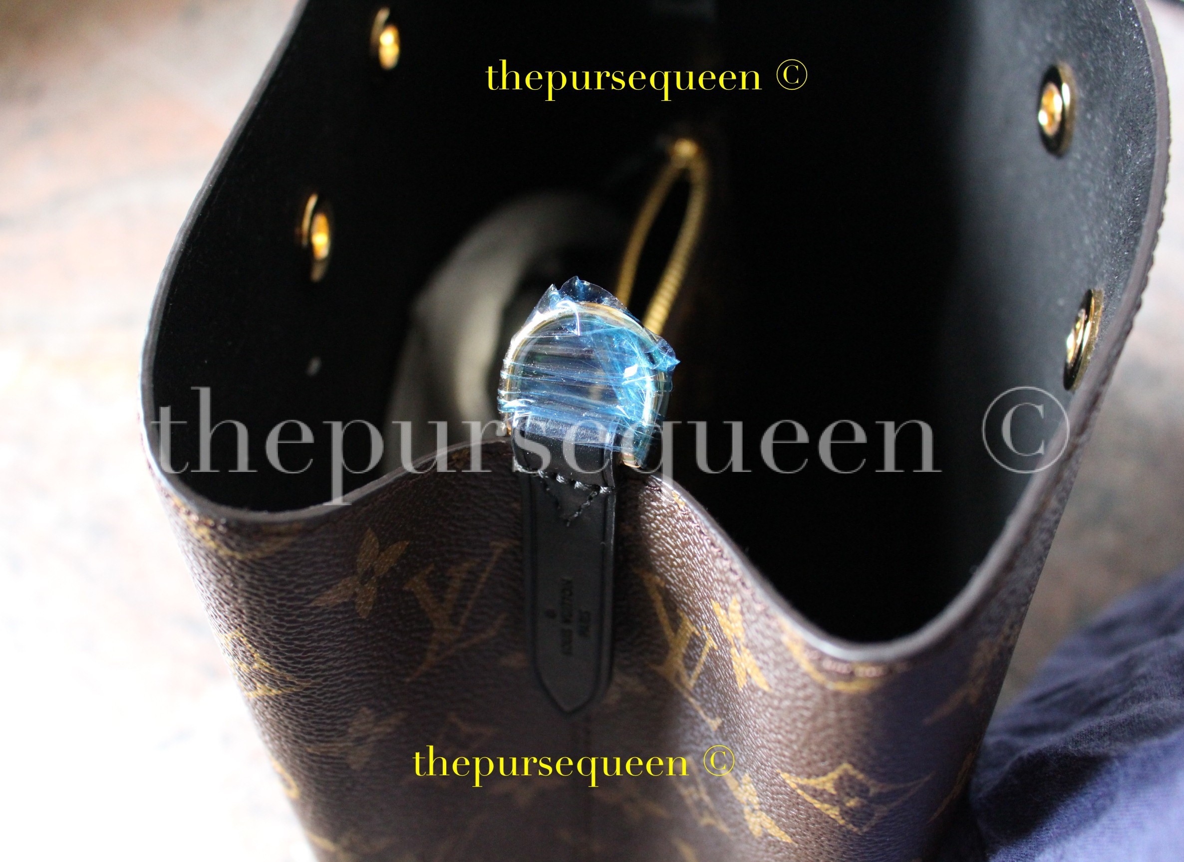 - Closeup of hardware for Louis Vuitton Neo Noe